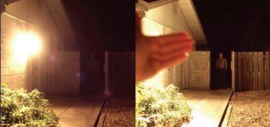 As for deterring crime, there's no conclusive evidence that bright lights do that and, in fact, poorly designed or installed lights can decrease security by creating blinding glare or dark shadows where those with bad intentions can hide. See how the glare in the first photo above makes it hard to see the man at the gate?